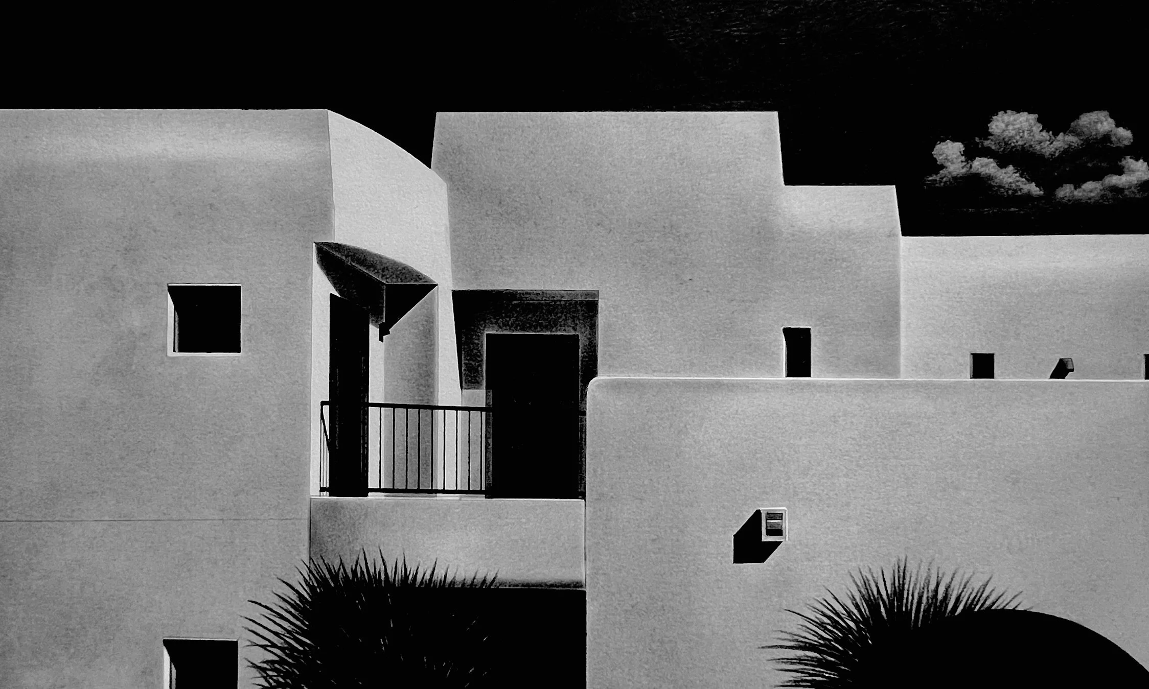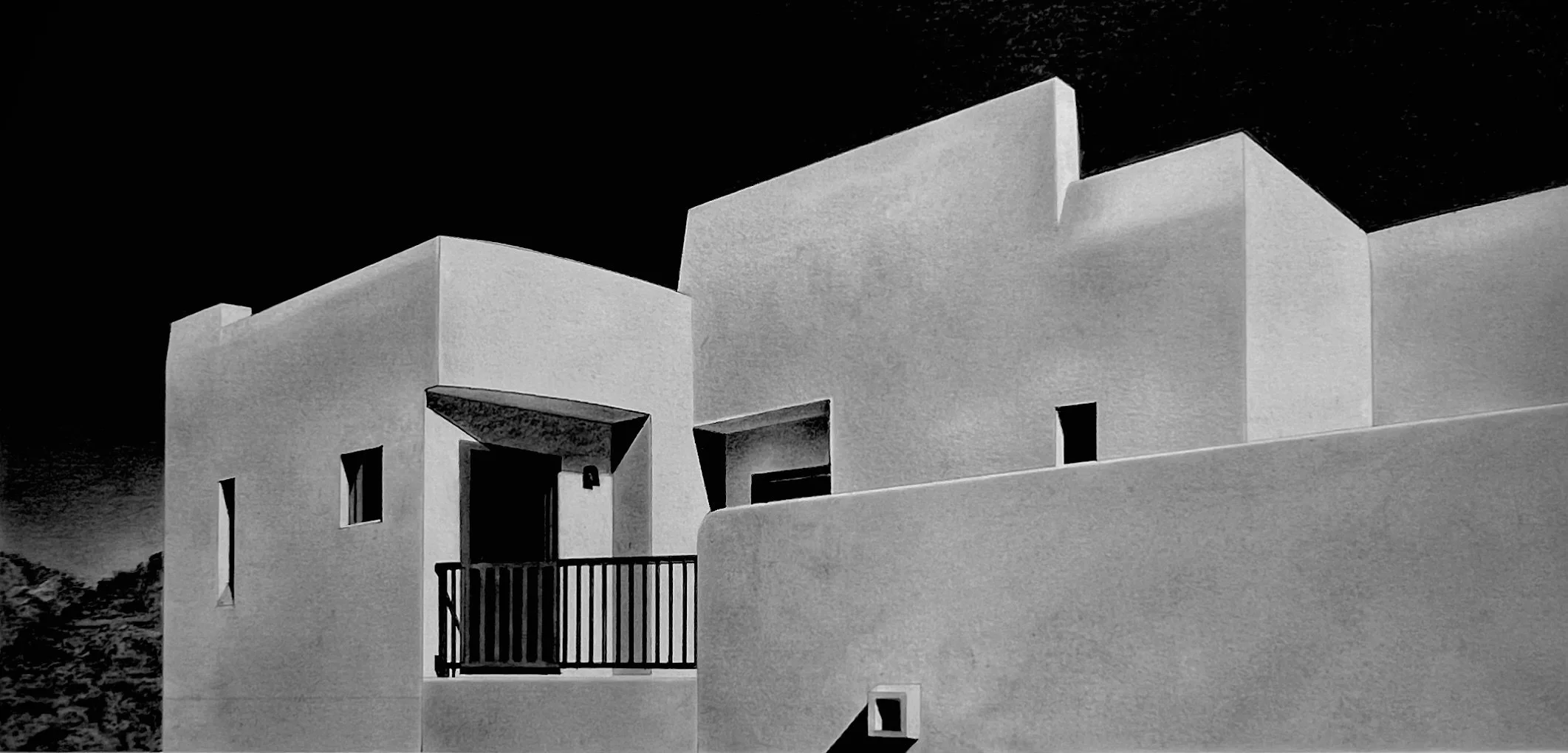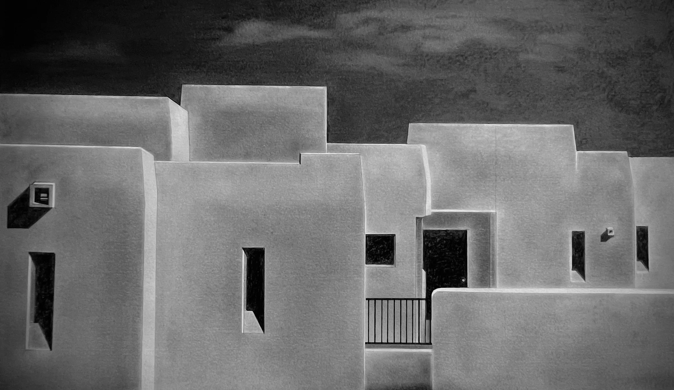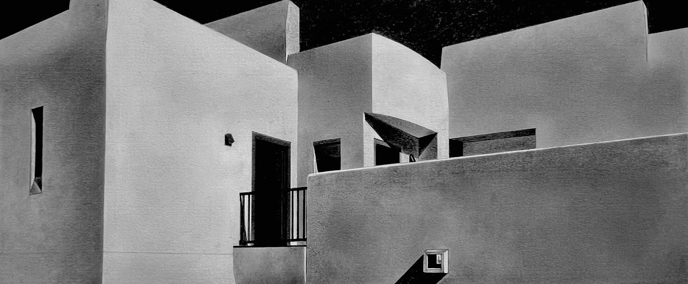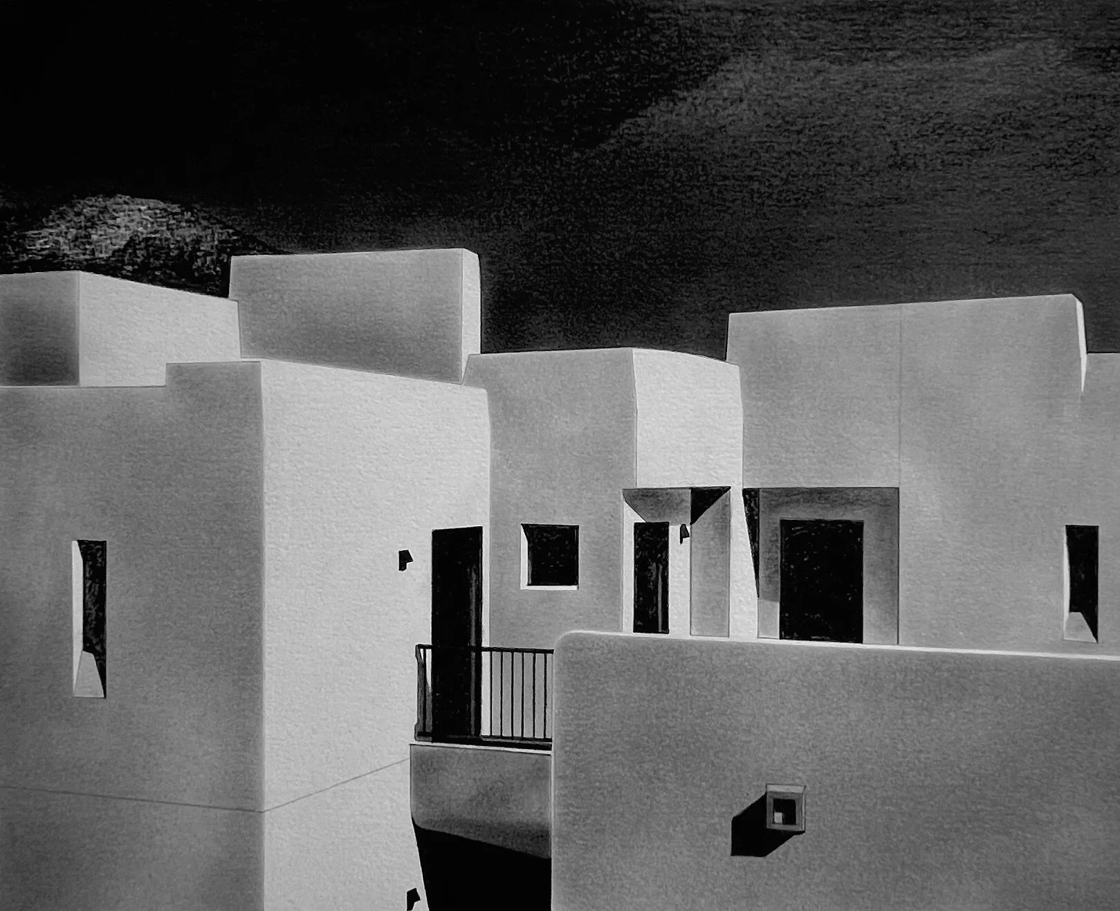 The Adero Hotel is the subject of an intimate series of work by Edwin Carter Weitz. It’s an in-depth study of the visual power that the southwestern sunshine has upon the architectural style of the region. The clean-lined drawings and intense oils capture the beauty and elegance of the interactions between geometric shapes and tonal variances through sensitive shifts in perspective.